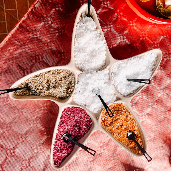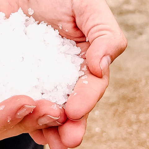 La Flor de Sal se presenta en tres variantes: natural, con especias o líquida. Contiene sodio, cloro y minerales esenciales como yodo, magnesio, hierro, calcio y flúor.
